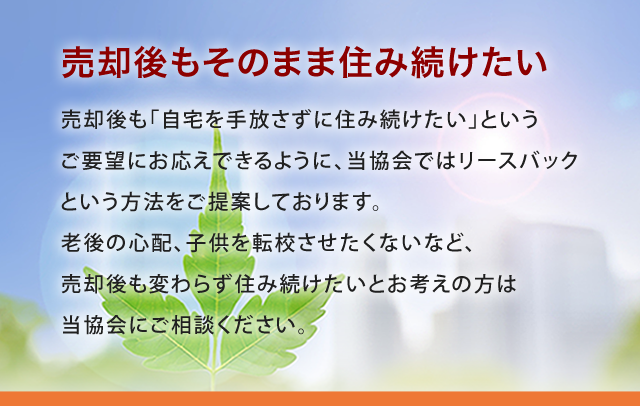住宅ローンが支払えず住み慣れた我が家にどうしても住み続けたい、思ったより退職金や年金が少なく今後の生活に不安、自宅を残しても相続させる人がいない、子供を転校させたくない。そんな方はリースバックをおすすめします。